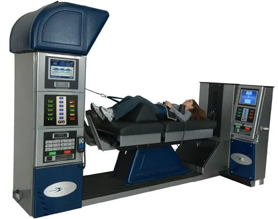 The DRX9000 uses traction to slowly and gently elongate the spine to increase the intervertebral disc spaces. The process is precise, which eliminates the risk for additional injury. The machine is computer controlled and programmed by a trained professional.